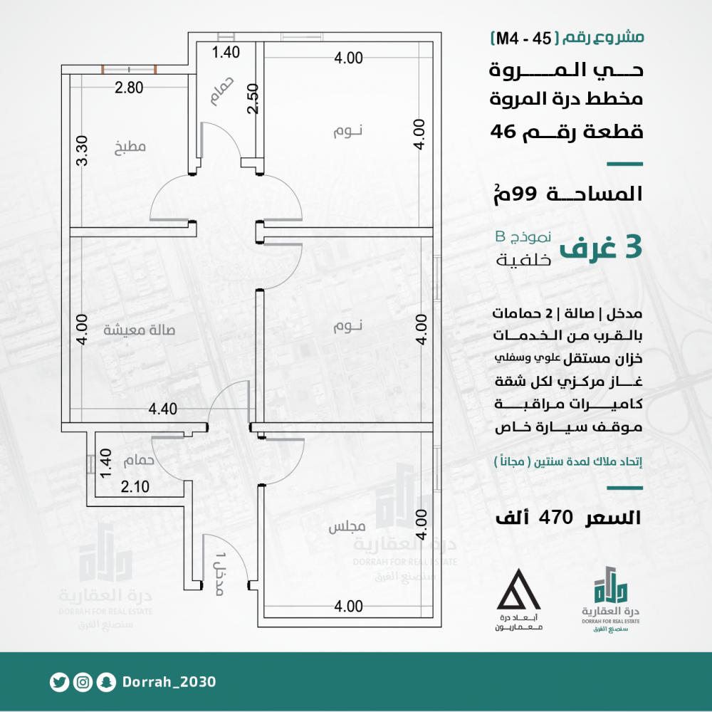 شقة رقم 4 - 3 الدور الرابع