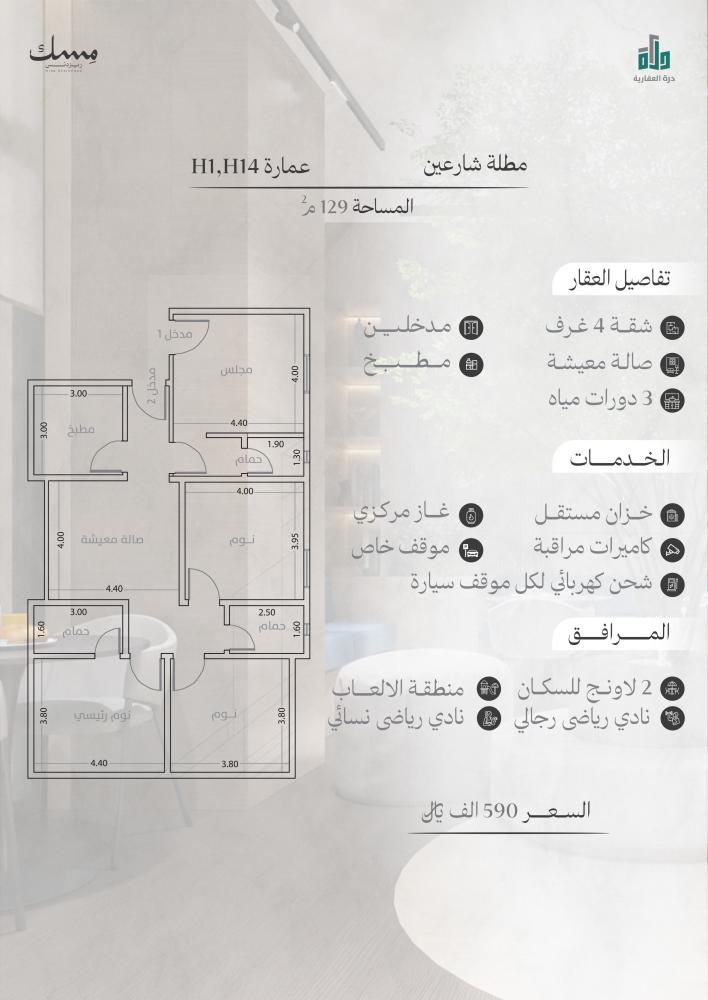 شقة رقم ( 2-2 ) الدور الثالث شارع